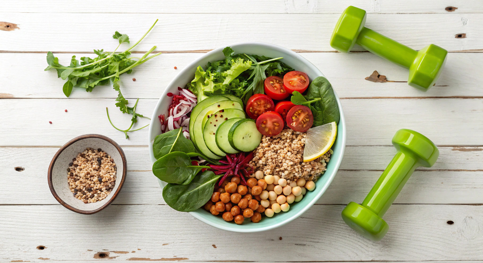For a plant-based option, a Mediterranean-style quinoa and lentil bowl with cucumbers, cherry tomatoes, herbs, and olive oil provides a complete protein source along with fiber and steady energy.